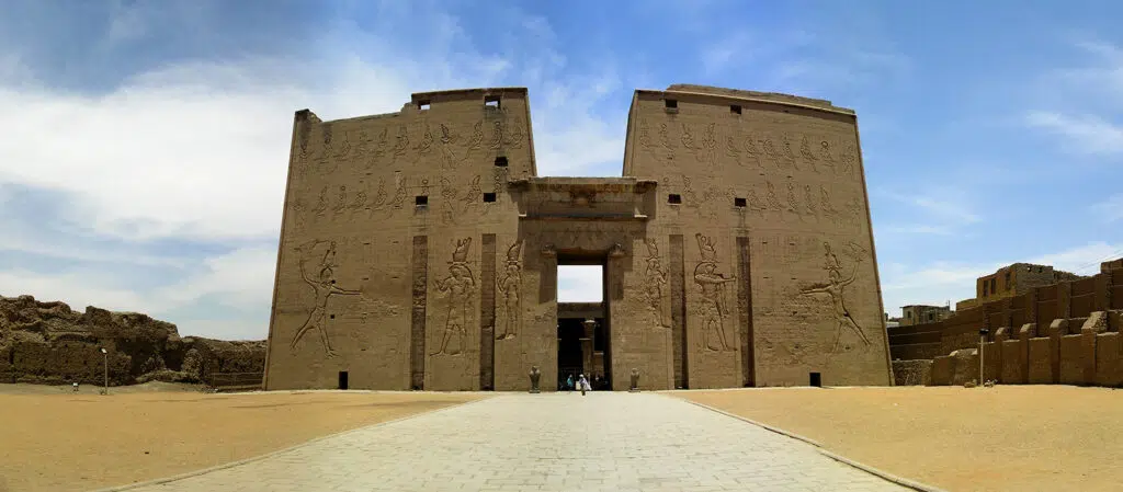 Navigation vers les temples de Wadi-Es-Seboua. Déjeuner dans le désert et arrivée à pied pour rejoindre les temples au coucher du soleil.