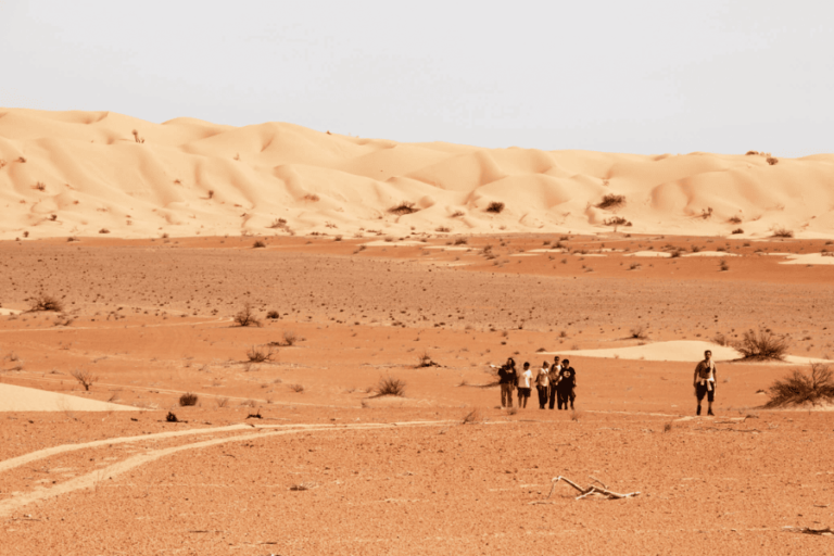 Visite et balade dans les Souks de poisson à Sur, puis en route vers Wahiba. Continuation vers le Wadi Bani Khaled, vaste vallée verdoyante blottie contre le massif du Hajjar: véritable jardin d'Eden, l'eau y est permanente toute l'année. Palmiers, manguiers, citronniers et bien d'autres arbres fruitiers y prospèrent. Plusieurs villages s'y sont établis de longue date, dissimulés dans ces oasis fertiles. Visite de la vallée, ses oasis et possibilité de baignade dans les eaux émeraudes du wadi. Puis transfert vers le désert de Wahiba où vivent encore des bédouins éleveurs de dromadaires. Hauts sur pattes, fins et robustes, ces dromadaires sont très recherchés aujourd'hui dans les pays du Golfe pour leur qualité de « sprinters ». Le désert de Wahiba est une mer de sable totalement fermée, séparée du Rub'Al Khali par 200 kilomètres de plaine caillouteuse.
