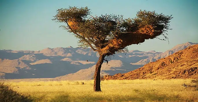 La savane broussailleuse s’étend sur plus de la moitié des territoires. Terre des plantes grasses, en particulier des euphorbes, les plaines sont parsemées d’arbres bien adaptés à la rareté de l’eau. Dans le sud, où les sols bénéficient de sources d’eau éphémères, les acacias, jujubiers et tamaris, arbre-à-carquois font le bonheur des botanistes. Diverses variétés d’aloès couvrent les collines du sud-est et la partie semi-désertique du Namib.