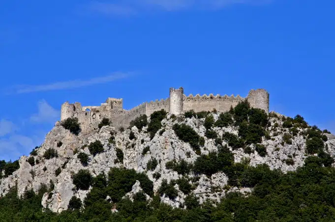 Entre Corbiéres et Pyrénées ariégeoises, les silhouettes déchiquetées de quelques châteaux oubliés content des histoires qu'auraient pu chanter les troubadours. Nous vous dévoilons des sentiers authentiques à la conquête des citadelles Cathares. Les cris des Parfaits, gardiens de la foi cathare, résonnent encore dans les cinq plus grandes citadelles qui virent leur destin basculer. Les lieux portent encore les marques profondes de la croisade, Au-delà des vignobles, avec la Méditerranée pour horizon, les chemins s'insinuent dans les premières collines, puis grimpent à l'assaut des places fortes dans les contrefort des Pyrénées