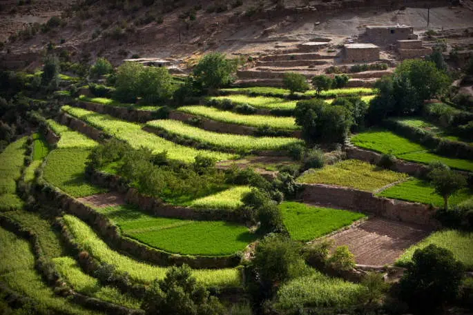 Descente dans la vallée des Aït Boulli jusqu'à Souk Sebt (1700 m). Retour à Marrakech en minibus par Demnate, 3 h 30 de route.