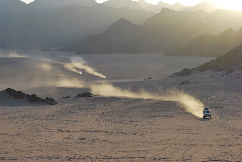 Itinéraire en 4x4 à travers le désert et haltes dans des oasis et des sites remarquables. Visite du château d'Eyn Um Dabadib et balade dans ce beau site.
